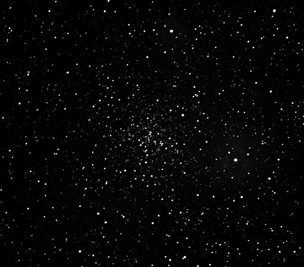 Click on the image to see a larger version. Note that the stars are nice and round, with no evidence of guiding problems. To get this result, I studied the behavior of the the mount -- it is pretty aggressive when it moves during guiding, so you need to set the various parameters in the hand controller and camera control software to lower, less aggressive settings, to get good results. A very good polar alignment is also crucial to success. |