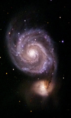The Whirlpool (M51) Galactic detail is elusive - you need long exposures to capture details like you see here. Guided exposures allow you to take very long exposures. In a guided exposure, the changing position of a guide star tells the software how to move the mount in small amounts to maintain perfect alignment for long exposures. Image Copyright 2000 by Ron Wodaski |