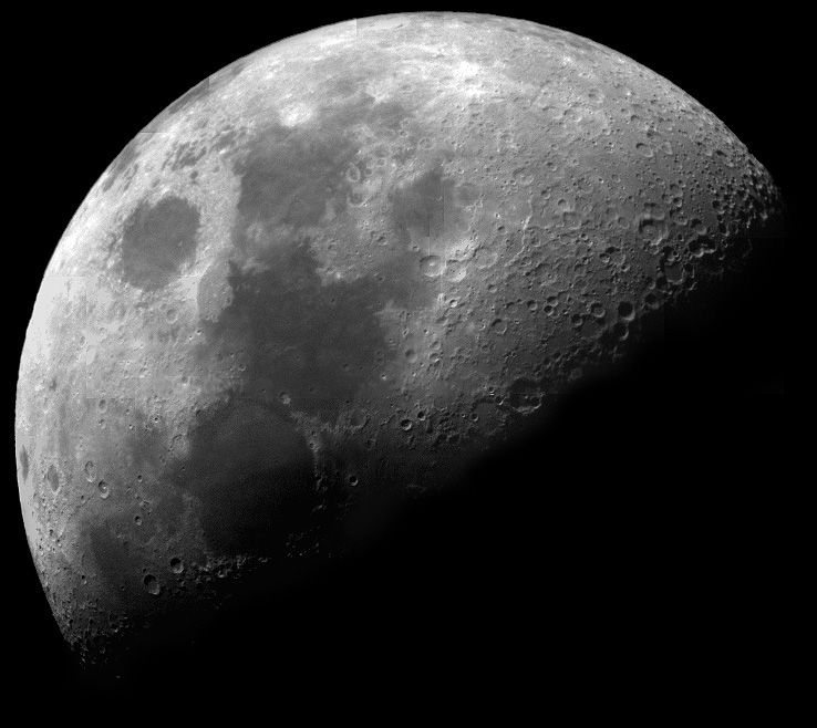 of details visible, from sharply shadowed craters to broad plains to