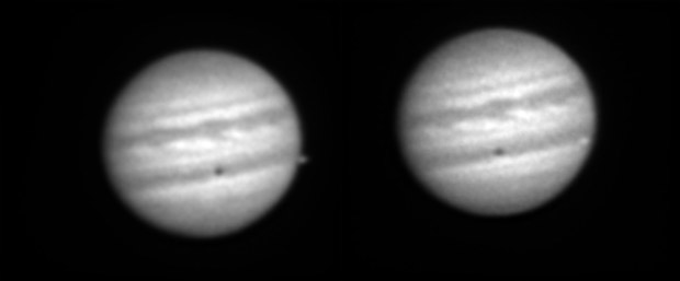 passing in front of the planet and casting it's shadow on Jupiter's clouds